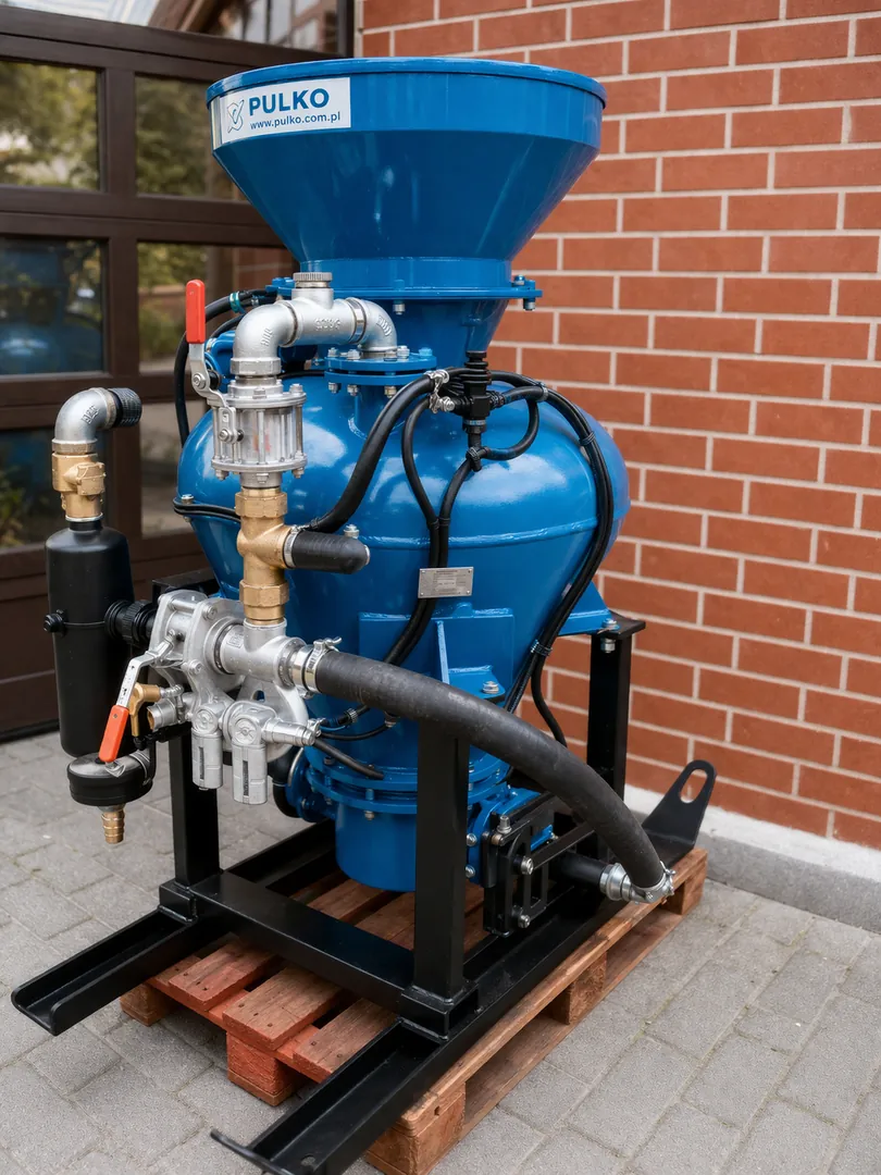 Zastosowanie na końcówce rurociągu lancy umożliwia wykonywanie torkretu z zastosowaniem takich spoiw jak: