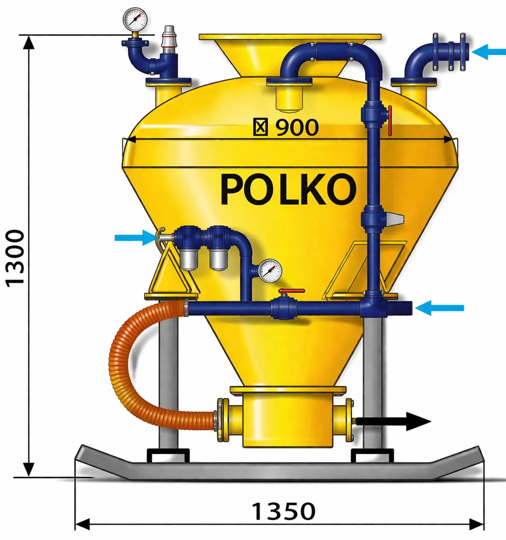 Górnicze Urządzenia Pyłowe (GUP) systemu POLKO służy do mechanicznego opylania pyłem kamiennym ociosów, wyrobisk górniczych w celu zmniejszenia zagrożeń wybuchem pyłu węglowego.